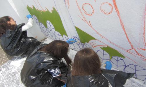 Fue una experiencia única y muy enriquecedora. Los alumnos pusieron en práctica la mezcla de pinturas, descubrieron cómo trabajar con otra dimensión espacial, cómo armonizar los colores. Pero, sin duda, lo más importante de esta experiencia, fue el trabajo en equipo, construyendo una parte de su ciudad, donde cada uno aportaba una pincelada, un tono o un simple trazo para obtener un resultado final con una gran riqueza visual.